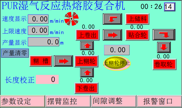 1)啟動:點擊此按鈕將啟動設備運行,并將展布輥馬達啟動恒定運轉。